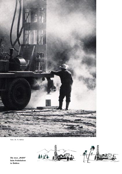 Aus dem Inhalt: Land-Seemessungen Plön-Zechstein 1960 Ölsuche - sehr viel billiger! Mahmud und der Zauberspiegel Baalbek Kammerton A Trockenfisch.. Camp-Ausrüstung des seismischen Äthiopien-Trupps "Für Murks nehme ich kein Geld" Flurschadenanmeldung Zahlenrätsel Familiennachrichten Foto Titelseite: Blick auf den Grüntgen bei Schwaden. Foto: Dr. P. Vetterlein Foto Rückseite: Die neue 'M60H' beim Probebohren in Gabbro. Foto: Dr. R. Köhler Herausgeber: PRAKLA Gesellschaft für praktische Lagerstättenforschung G.m.b.H., Hannover, Haarstraße 5 Schriftleitung: Dr. R. Köhler, Dr. O.Geußenhainer, Hannover Gesamte graphische Gestallung: Kurt Reichert , Hannover Fototechnische Mitarbeit: H. Heberger Satz und Druck: Druckerei Caspaul, Hannover Druckstöcke: A. Madsack & Co., Graphische Kunstanstalten, Hannover |